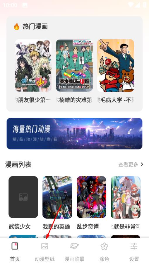 1、點擊頁面底部的動漫壁紙,進(jìn)入動漫壁紙頁面。