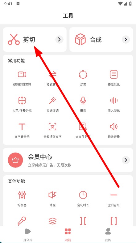 1、打開剪韻音樂剪輯,在工具頁面點(diǎn)擊剪切。