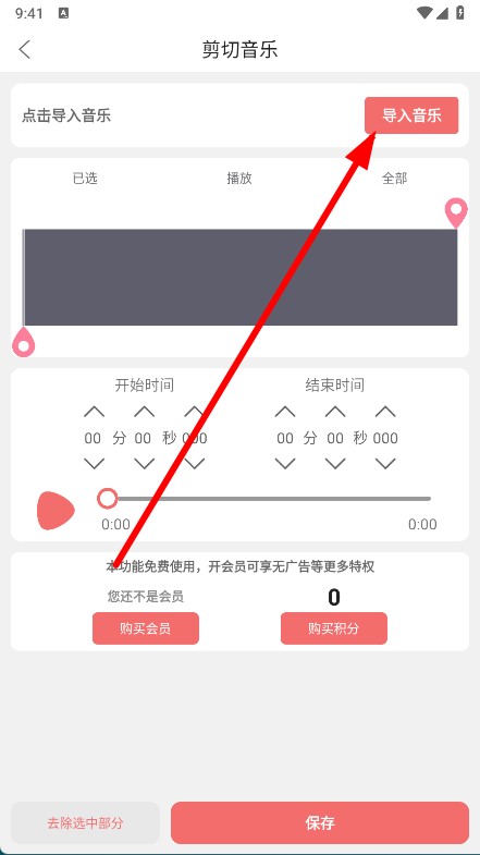 2、進(jìn)入剪切音樂頁面后,點(diǎn)擊導(dǎo)入音樂。
