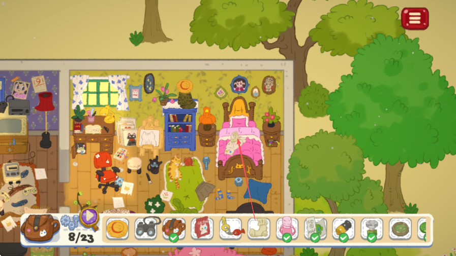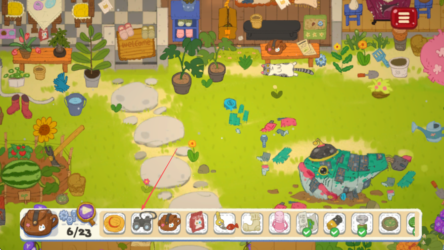 1、進(jìn)入游戲場(chǎng)景,查看下方物品欄,明確需要尋找的23件物品,此時(shí)已找到6件。