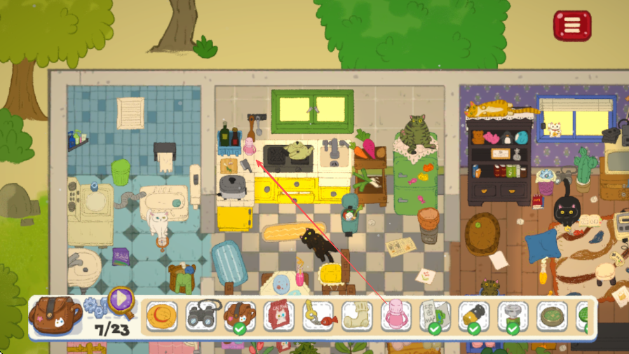 2、場(chǎng)景交互技巧:主動(dòng)與場(chǎng)景內(nèi)的人物、物品進(jìn)行交互,部分關(guān)鍵物品需通過(guò)特定交互獲取,比如貓咪手中的零件需先找到毛球分散其注意力,通過(guò)交互推動(dòng)任務(wù)進(jìn)展。
