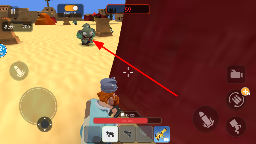 2、發(fā)現(xiàn)僵尸后,瞄準僵尸發(fā)起攻擊,通過點擊射擊按鍵等方式,對僵尸造成傷害,在攻擊過程中,注意射擊的準度與頻率。