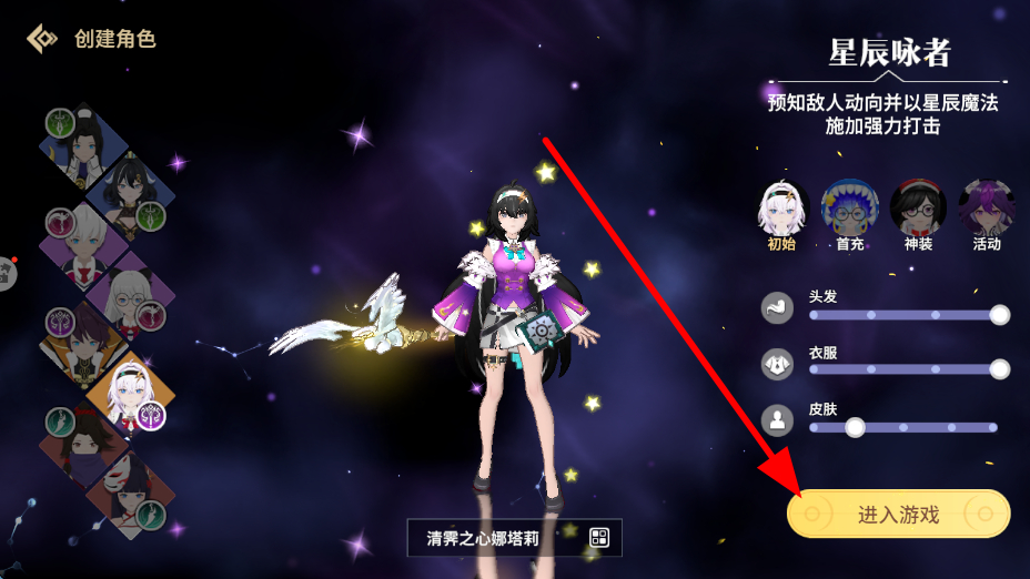 1、創(chuàng)建角色選擇不同的角色形象,還能對頭發(fā)、衣服、皮膚等進行調整,完成角色設置后,點擊進入游戲,即可開啟冒險之旅。