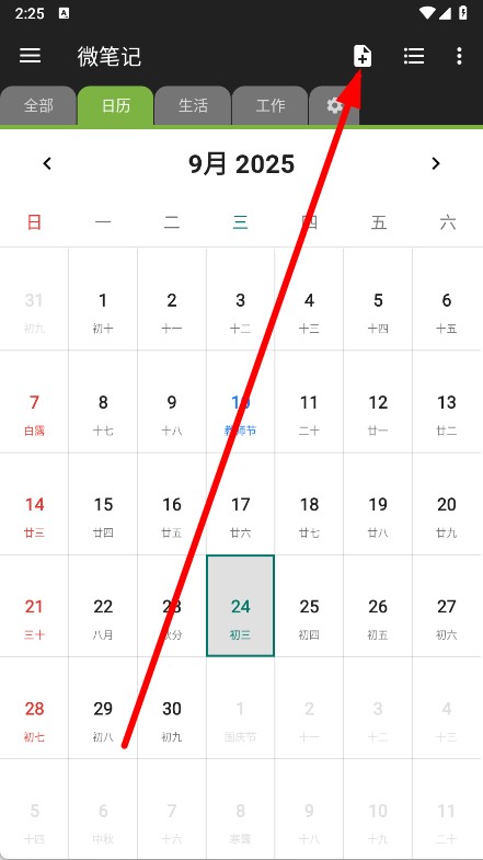 1、打開(kāi)微筆記,點(diǎn)擊右上角的加號(hào)圖標(biāo)創(chuàng)建新筆記。