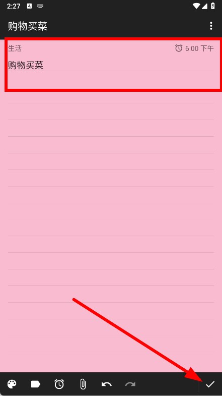 4、設(shè)置完成后,點(diǎn)擊右下角的對(duì)勾圖標(biāo),保存筆記及提醒設(shè)置。