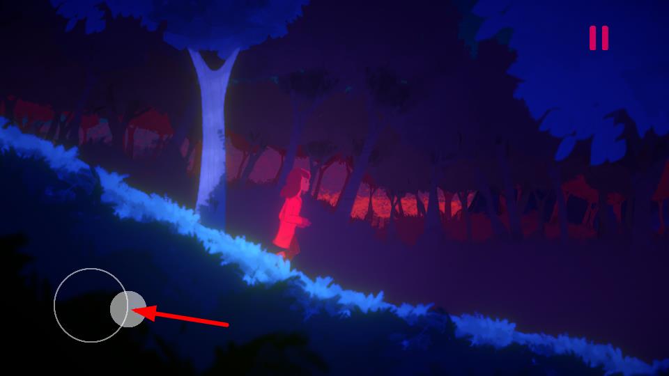 1、在冒險(xiǎn)解謎游戲中,操控角色在夜晚的森林場(chǎng)景中移動(dòng),按鈕用于控制角色的行走方向,暗色效果營(yíng)造神秘冒險(xiǎn)氛圍。