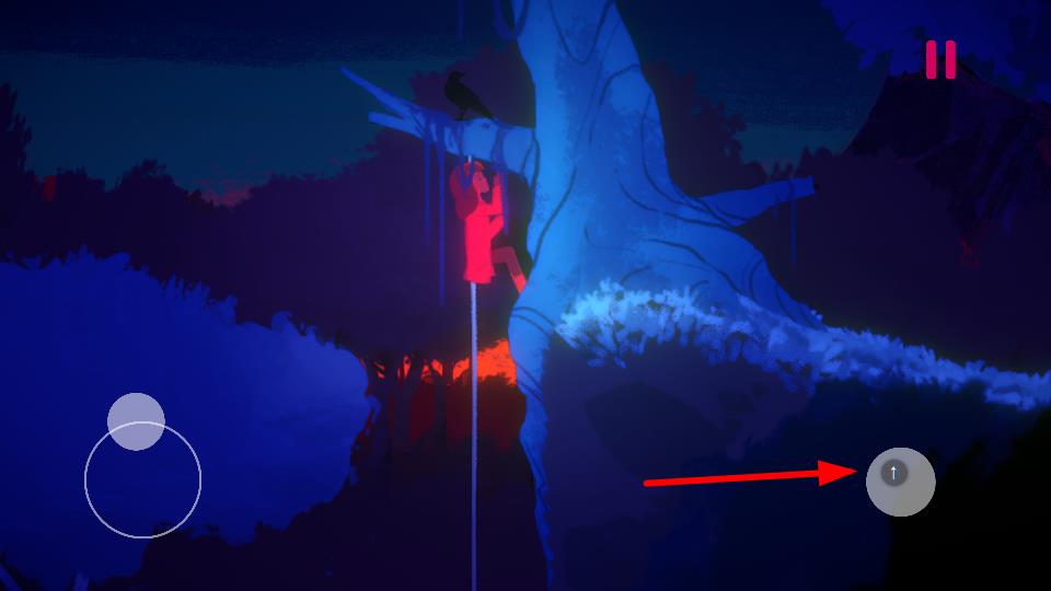 2、點(diǎn)擊右側(cè)的互動(dòng)按鈕,角色可進(jìn)行攀爬等動(dòng)作,與環(huán)境中的樹木互動(dòng),攀爬操作是探索高處區(qū)域、獲取線索關(guān)鍵方式。