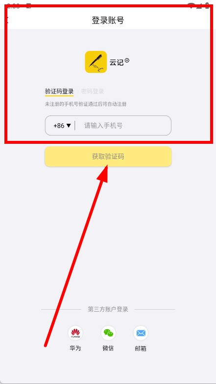 3、選擇驗(yàn)證碼登錄,輸入手機(jī)號(hào),點(diǎn)擊獲取驗(yàn)證碼。