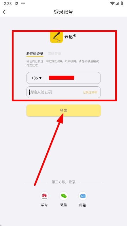 4、輸入收到的驗(yàn)證碼,點(diǎn)擊登錄,即可完成注冊(cè)。