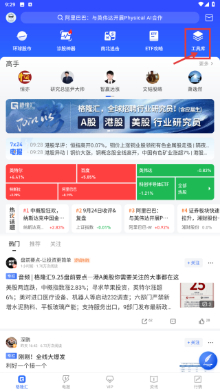 1、打開金融資訊APP,點擊右上角工具集選項,進入工具列表頁面。