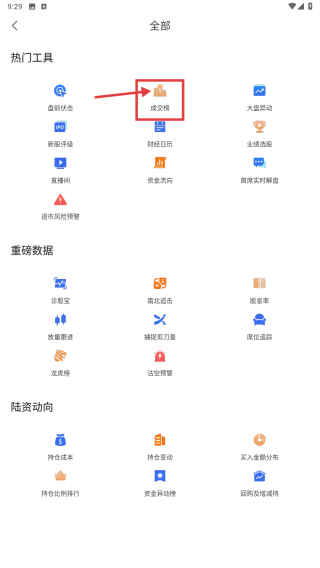 2、在工具列表中,點擊成交榜選項,進入成交榜詳情頁。
