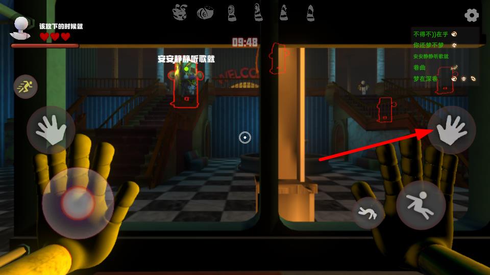 2、在場景中遇到互動(dòng)提示時(shí),點(diǎn)擊右側(cè)手掌按鍵,可與場景元素互動(dòng),這是推進(jìn)游戲進(jìn)程、解鎖內(nèi)容的關(guān)鍵操作。