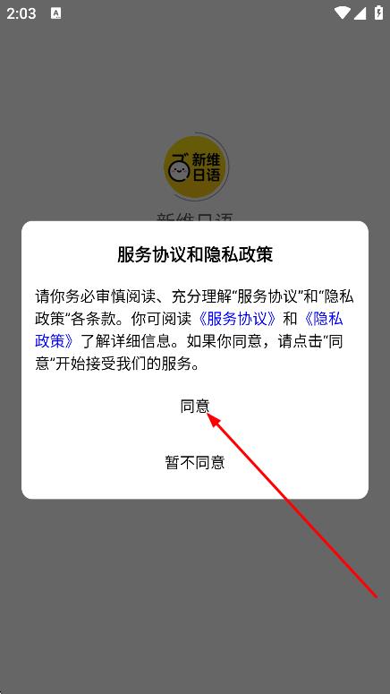 1、在服務(wù)協(xié)議和隱私政策彈窗,點(diǎn)擊同意,進(jìn)入主界面。