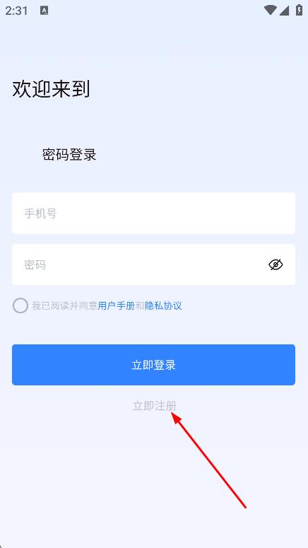 3、隨后我們?cè)诘卿涰撁妫c(diǎn)擊立即注冊(cè),進(jìn)入注冊(cè)頁面。