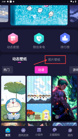1、打開壁紙APP,點擊圖片壁紙選項,進入圖片壁紙分類頁面。
