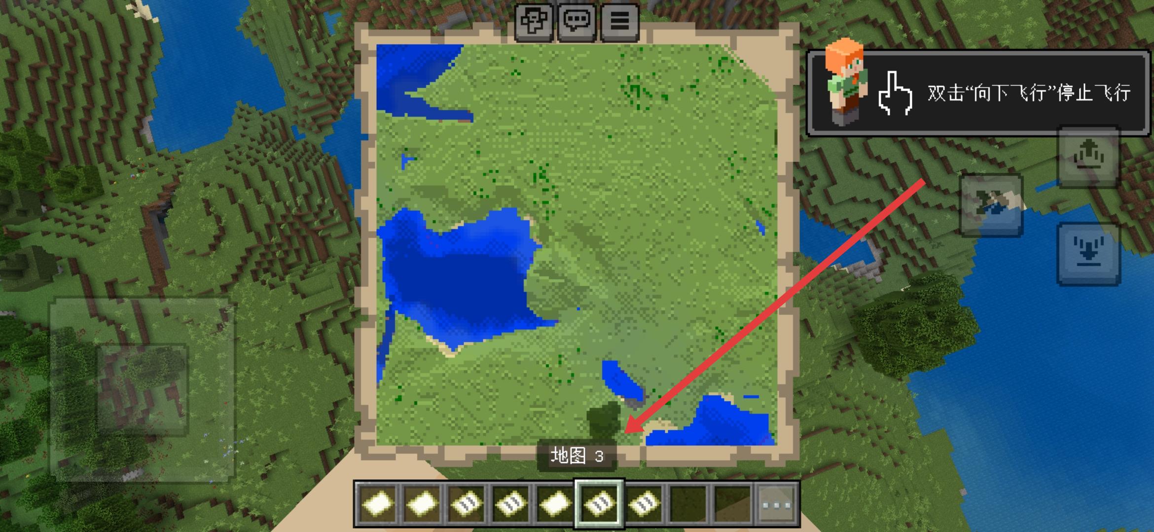 2、將合成的空白地圖拿在手中,點擊界面的創(chuàng)建地圖或右鍵使用,激活地圖的地形記錄功能。