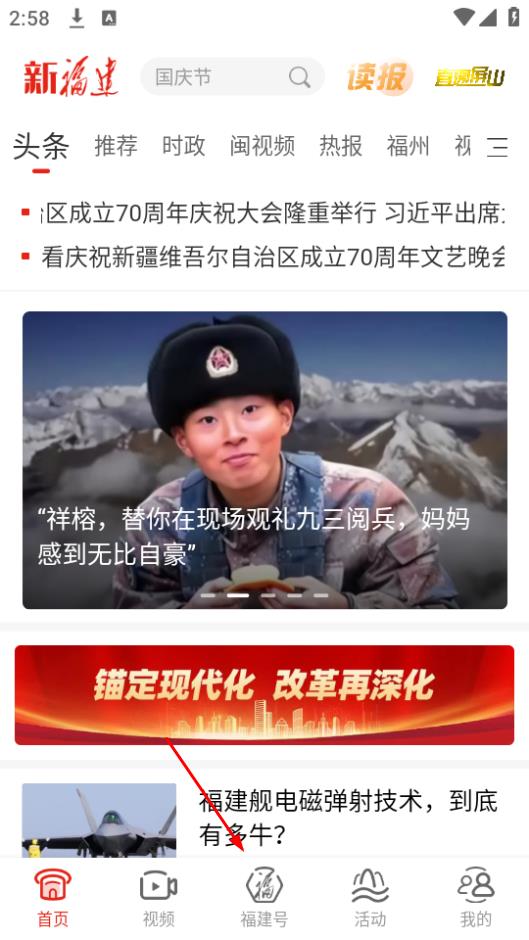 1、打開新福建,點(diǎn)擊頁面底部的福建號(hào),進(jìn)入福建號(hào)頁面。