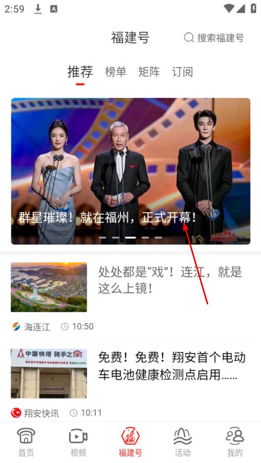 2、在福建號(hào)頁面,點(diǎn)擊群星璀璨就在福州新聞,進(jìn)入新聞詳情頁面。
