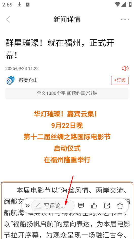 3、在新聞詳情頁面,點(diǎn)擊展開評(píng)論輸入框的按鈕,準(zhǔn)備寫評(píng)論。