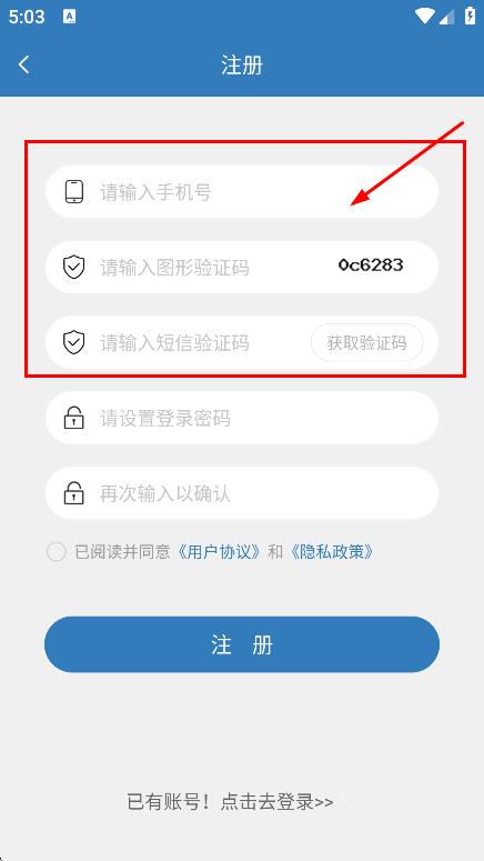 3、在注冊頁面,依次輸入手機號、圖形驗證碼、短信驗證碼。