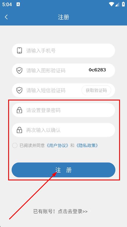 4、設置登錄密碼并再次輸入確認,勾選同意協(xié)議后,完成注冊。