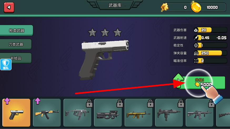 2、前往武器庫,使用金幣對武器進(jìn)行升級,提升武器的傷害、射速等屬性,讓武器在對戰(zhàn)中能發(fā)揮更強(qiáng)的威力。