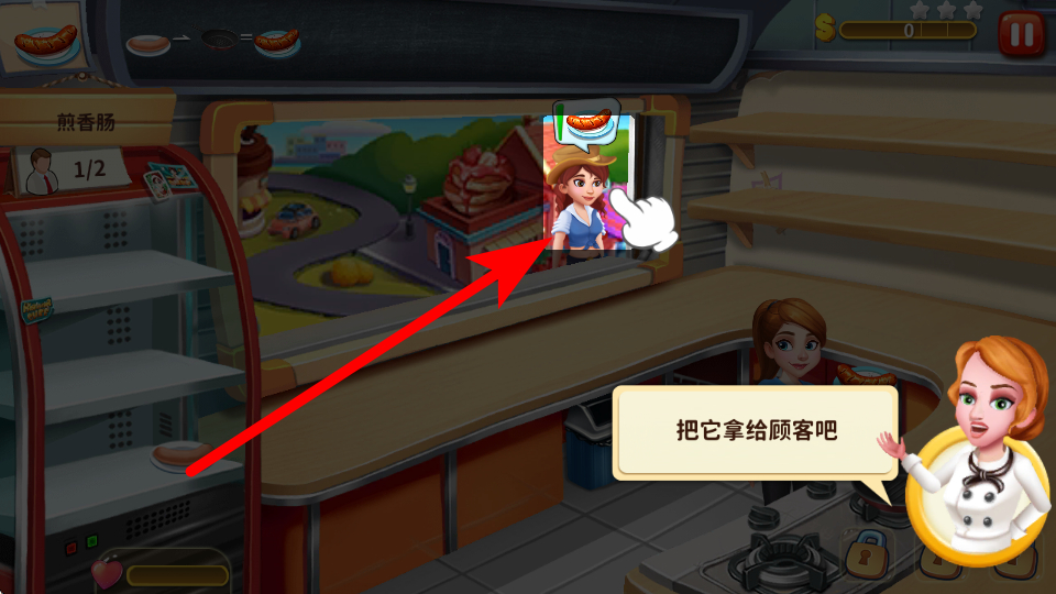 2、服務(wù)顧客很重要,美食制作好后,要及時(shí)拿取,然后送到對(duì)應(yīng)的顧客手中,滿足顧客需求,這樣才能獲取收益。