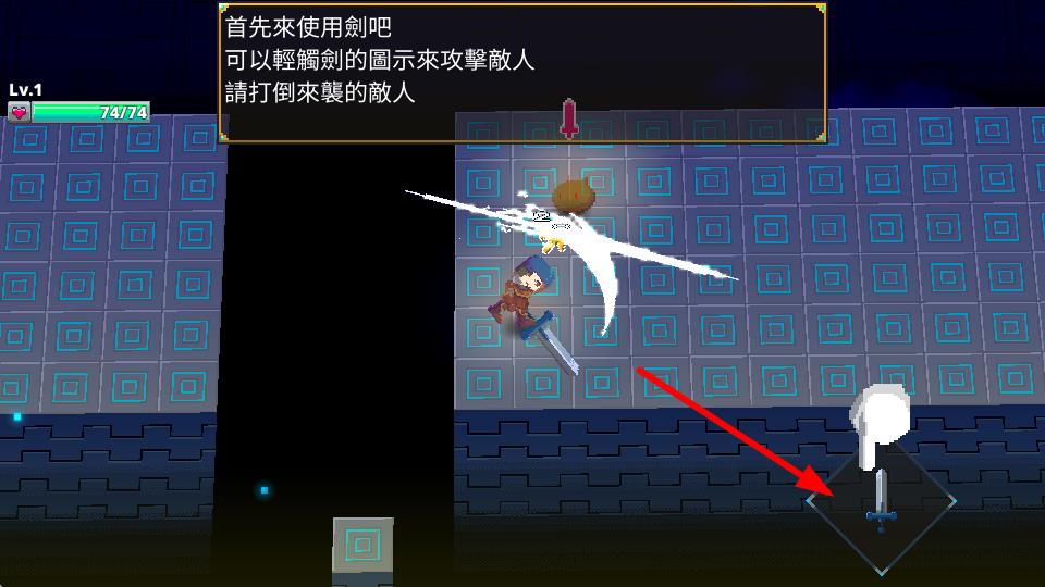 4、戰(zhàn)斗時(shí),輕觸劍的圖示可攻擊敵人,按照提示使用劍攻擊來(lái)襲的敵人,可順利打倒敵人并推進(jìn)游戲的進(jìn)程。
