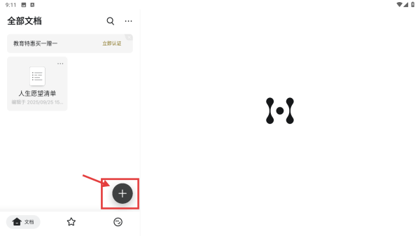 1、打開文檔類APP,點(diǎn)擊左側(cè)+號(hào)按鈕,彈出新建功能菜單。