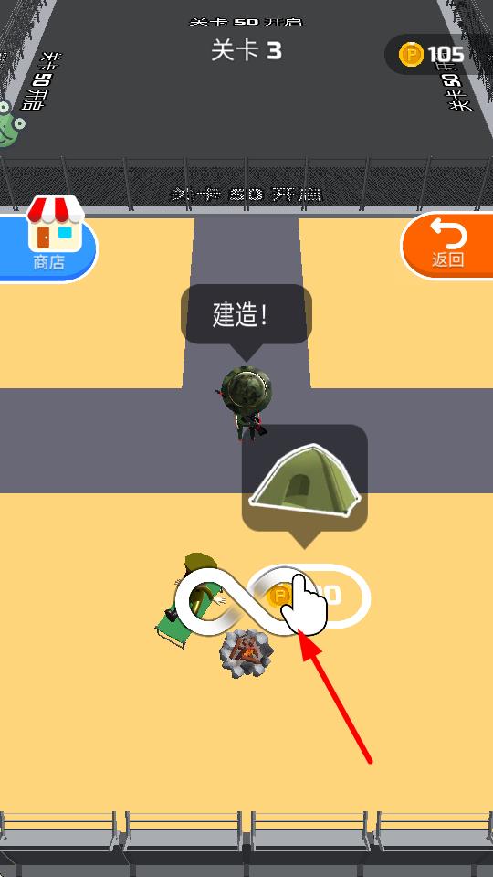 4、點(diǎn)擊金幣圖標(biāo),可進(jìn)行建造操作,消耗金幣建造帳篷等建筑,推進(jìn)游戲內(nèi)基地建設(shè)進(jìn)程。