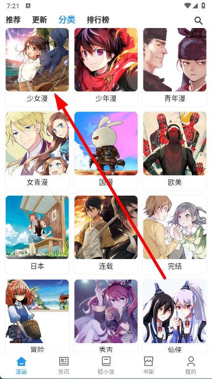 2、可看到多種漫畫類型分類,根據(jù)喜好選擇對應(yīng)類型。
