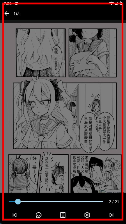 3、書簽保存記錄閱讀進(jìn)度:每次閱讀后系統(tǒng)會(huì)自動(dòng)記錄當(dāng)前的閱讀位置,下次打開時(shí)會(huì)直接跳轉(zhuǎn)到上次停止的地方,方便用戶繼續(xù)未完成的漫畫章節(jié)。