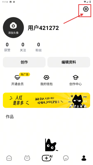 2、在個(gè)人中心,點(diǎn)擊右上角設(shè)置圖標(biāo),進(jìn)入設(shè)置功能列表頁(yè)。