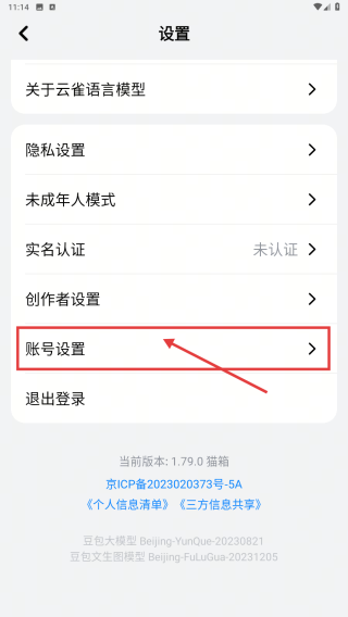 3、在設(shè)置頁(yè)面,點(diǎn)擊賬號(hào)設(shè)置選項(xiàng),進(jìn)入賬號(hào)管理界面。