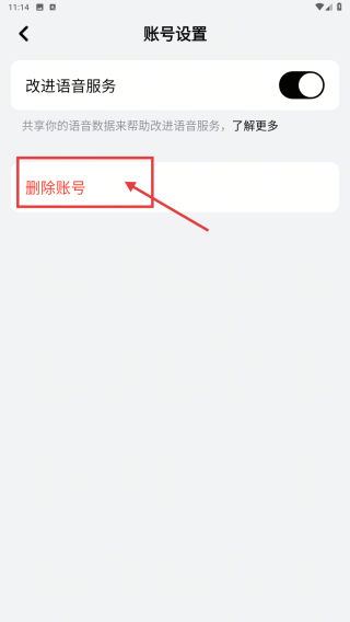 4、在賬號(hào)管理界面,點(diǎn)擊刪除賬號(hào)選項(xiàng),發(fā)起賬號(hào)刪除操作。