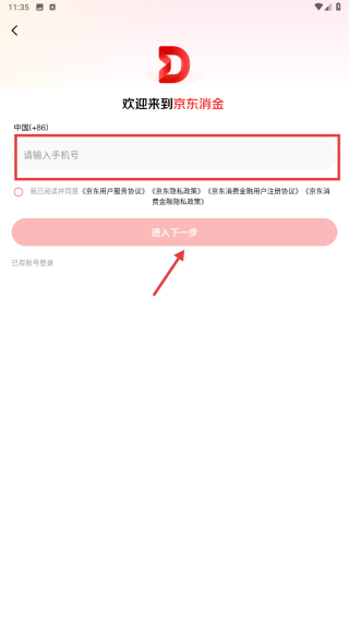 4、輸入手機(jī)號(hào)碼,點(diǎn)擊進(jìn)入下一步按鈕,進(jìn)行后續(xù)登錄操作。