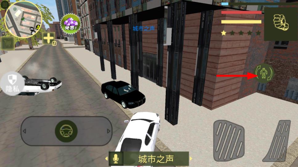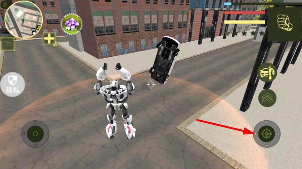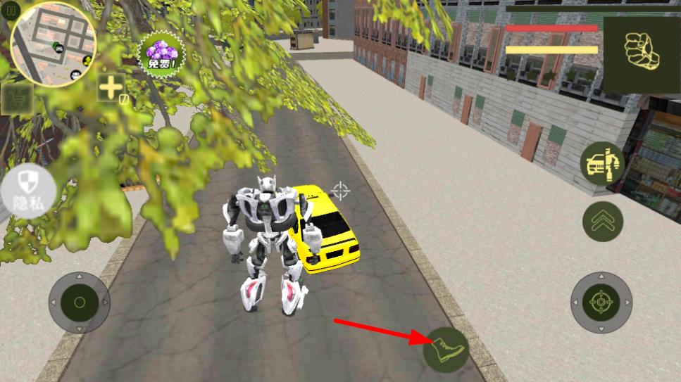 2、點擊右側(cè)鞋子圖標,可提升機器人的移動速度,便于快速穿梭于城市街道,完成任務(wù)。