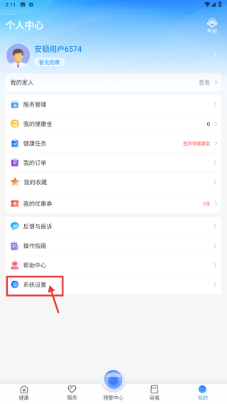 2、在個人中心,點擊系統(tǒng)設(shè)置選項,進(jìn)入設(shè)置界面。