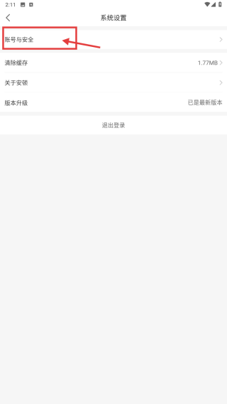 3、在系統(tǒng)設(shè)置頁面,點擊賬號與安全選項,查看賬號安全相關(guān)功能。