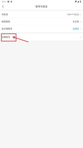 4、在賬號與安全頁面,點擊注銷賬號選項,進(jìn)行賬號注銷操作。