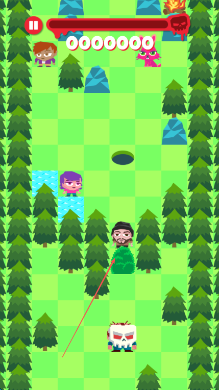 1、進入游戲,操控骷髏角色,避開如箭頭所指的敵人,同時留意上方血條。