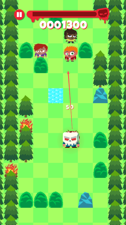2、按照箭頭方向,引導(dǎo)角色在林間移動,收集分數(shù),躲避火焰、水坑等障礙。