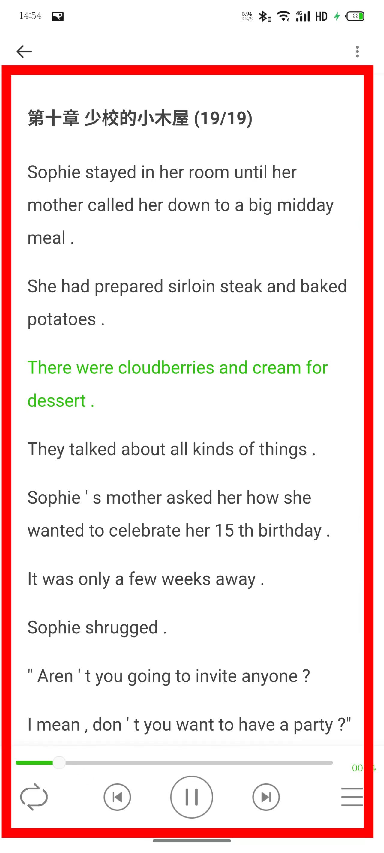 4. 在播放界面,用下方播放、暫停、章節(jié)切換等按鈕控制播放,通過(guò)進(jìn)度條調(diào)整收聽(tīng)進(jìn)度。