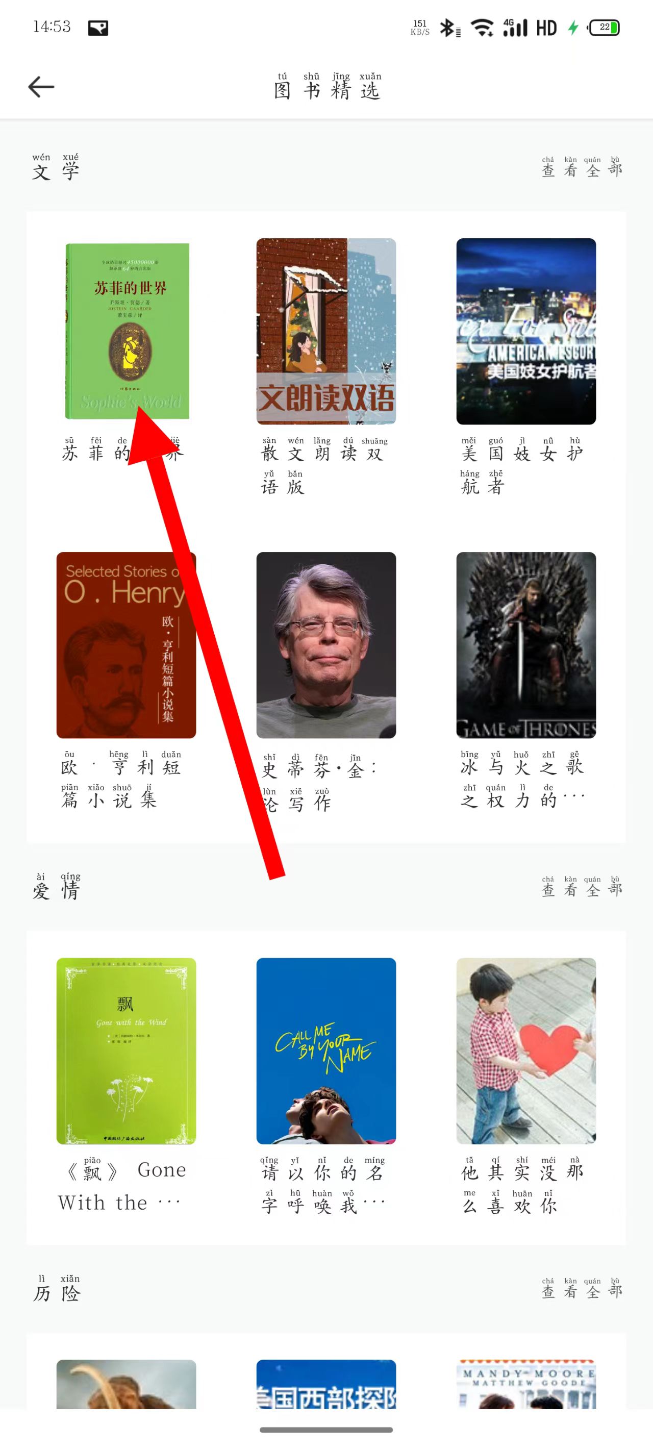 2. 在圖書(shū)精選頁(yè)面,瀏覽找到想聽(tīng)的小說(shuō)并點(diǎn)擊。