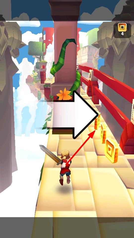 1、按照箭頭指示方向移動,可收集沿途的金色方塊資源,資源可用于解鎖道具提升角色能力。
