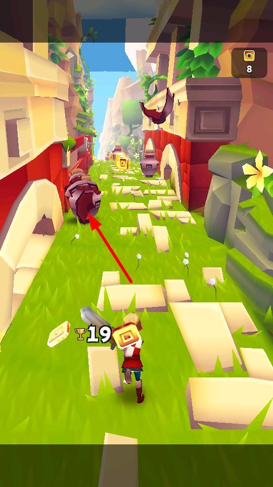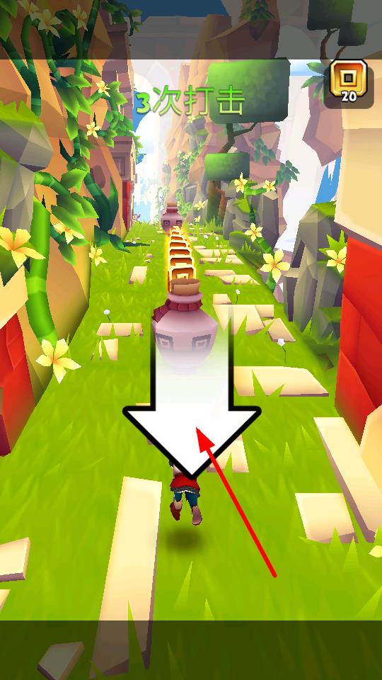 3、按照箭頭指示向下操作,可擊碎障礙物如陶罐,獲取隱藏的資源或道具,助力游戲進程。