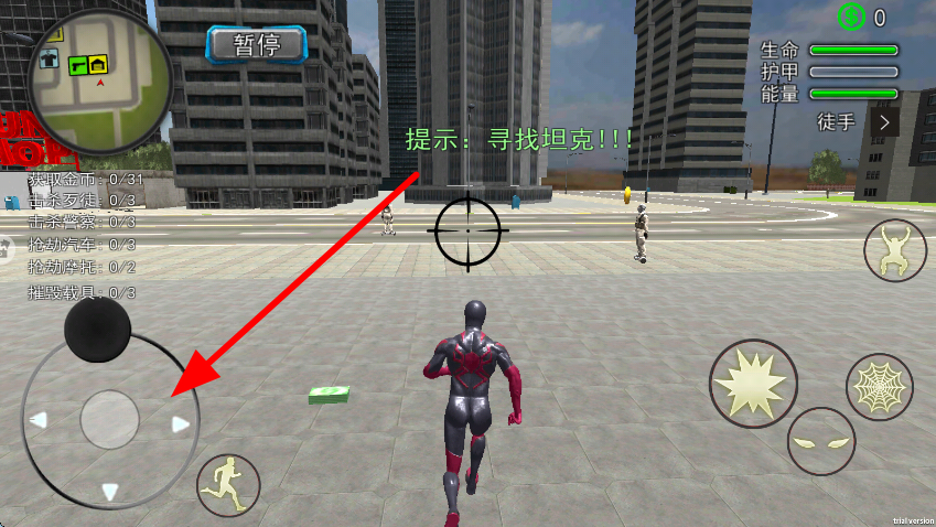3、輕松移動(dòng)操作方面,通過(guò)左下角的操作按鈕,操控角色在都市中行走、奔跑,前往不同地點(diǎn),開(kāi)展任務(wù)或探索場(chǎng)景。