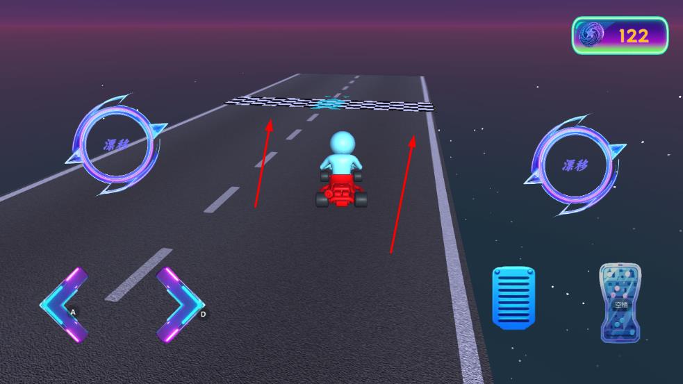 2、行駛時(shí),盡量收集道路上的藍(lán)色道具,積累分?jǐn)?shù),同時(shí)避開(kāi)障礙,維持賽車穩(wěn)定前行。
