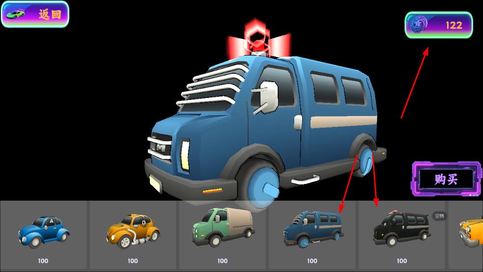 4、在車輛選擇界面,可用積累的分?jǐn)?shù),花費(fèi)100分?jǐn)?shù)購(gòu)買心儀車輛。
