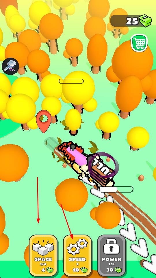 2、到達區(qū)域后,操控車輛進行伐木操作,收集木材,同時可利用SPACE、SPEED等功能道具。